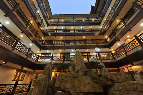 鳳凰鳳廷國際大酒店建筑風格突顯湘西民族民居的建筑風格。以苗家和土家的吊腳樓和四合院為基本元素,用現代居家觀念進行創(chuàng)新解構和重組,營造出一種讓外來人能感受到的原汁原味的湘西氣息,讓湘西本土人于陌生中感到親切、于熟悉中感到新鮮的韻味。