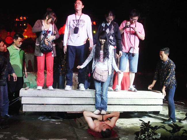 Time come from language of China′s Tujia nationality, it means god-worshipers when offering sacrifices to their gods. The songs are a combination of various art forms, such as music, dance and literature. Sumptuous lightings, smooth dances, long-lost sacrifice ceremonies, mysteries high-pitched spell, among others create a real sensation.