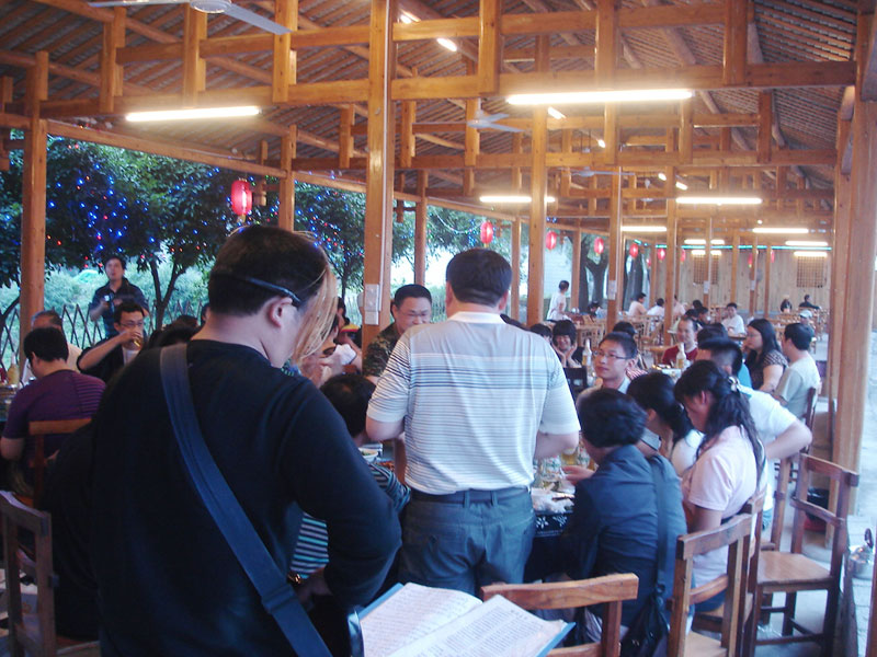 張家界武陵源大作坊美食城是一家集垂釣休閑,特色餐飲,夜市為一體的大型風(fēng)味美食城!位于風(fēng)景如畫的武陵源風(fēng)景區(qū)區(qū)政府所在地,占地3000多平方米,可同時(shí)容納400多人就餐。這里也是景區(qū)內(nèi)匯集土家美食,苗家美食的第一坊!美食城按純木四合院建造,內(nèi)設(shè)酒作坊,豆腐作坊,臘味作坊,糍粑作坊,有垂釣區(qū),燒烤區(qū),菜品自助區(qū),客人廚藝展示區(qū),農(nóng)產(chǎn)品展銷區(qū)等。酒作坊內(nèi)聘請(qǐng)了民間煮酒大師現(xiàn)場煮酒,你有機(jī)會(huì)可以現(xiàn)場吃到熱乎乎的頭鍋酒,酒坊內(nèi)有純米酒,包谷燒,高梁酒,有用野果泡制的各種果酒---燈籠酒,楊梅酒,彌猴桃酒等,更有特色的是把高梁酒放在正在生長的楠竹內(nèi),用竹內(nèi)竹膜的香味把酒增香,十二天就把竹子砍下再放養(yǎng)三天就好了,客人要吃現(xiàn)場鋸竹筒酒吃!豆腐坊也是聘請(qǐng)民間老農(nóng)現(xiàn)場用自制的石磨做豆腐,在這里你可以吃到真正有豆香味的原汁原味的石磨豆腐,和渣,菜豆腐,豆腐腦等豆制品!臘味作坊里有冬天用各種香料熏制的正宗湘西藏臘肉,臘豬頭肉,臘香腸,臘豬腳,各種臘制品臘野味等。糍粑坊每天在晚上人多用餐高峰時(shí)現(xiàn)場打滋粑,客人也可以自己參與打糍粑這個(gè)快樂的過程,想受過年時(shí)才有的熱鬧情景!在垂釣區(qū)里我們放養(yǎng)有很多野生魚類,有時(shí)間了你可以來這里休閑垂釣,得到的魚我們就會(huì)給你現(xiàn)場加工,有清沌的,紅燒的,青椒燜的,酸湯的,都很好吃哦。燒烤區(qū)里,我們高薪聘請(qǐng)了燒烤大師為你現(xiàn)場制做,你也可以自己動(dòng)手,有烤羊排羊腿,各種串烤,烤全魚,烤全兔等,還有各種鐵板烤可以自己炒著吃!菜品自己選區(qū)里有各種山野菜,壇子菜,干菜,臘味等,有各種鮮活的魚類,河蛘,水魚,田螺,龍蝦等,有各種農(nóng)家的土雞土鴨等,有各種鮮活的野味等你來享受美味呢!客人廚藝展示區(qū)里老板特設(shè)制地幾口大鍋, 很有特色的是, 你可以自己親自下廚, 酸甜苦辣任您自由調(diào)配 。 煮好了, 大家就圍著這“灶臺(tái)”合一的飯桌享受張家界的美食了。(張家界的三下鍋是很有特色的,是邊煮邊吃的, 只是這“三下鍋”是“大型三下鍋”而已。到張家界旅游,吃張家界的“三下鍋”是一種獨(dú)有的旅游體驗(yàn),到大作坊吃“大型三下鍋”,則更將會(huì)為你的旅程增添一份難得的回味。農(nóng)產(chǎn)品展銷區(qū)里展示著當(dāng)?shù)鼗蛳嫖鞯貐^(qū)最暢銷的農(nóng)產(chǎn)品食品:正宗湘西鄉(xiāng)里臘肉,香腸,各種臘制品,洗車河霉豆腐,靈潔牌剁椒辣醬系列,菌油,正宗茶籽油,苗家酸湯,鄉(xiāng)里正宗葛粉,大壇湘西五糧液,竹簡敲敲酒,張家界茅巖霉茶,野生蜂蜜,高山葛粉,張家界第一山珍巖耳,葛根片等等!