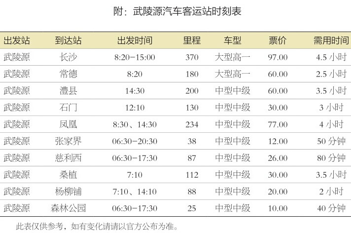 武陵源汽車站發(fā)班表及發(fā)車時間