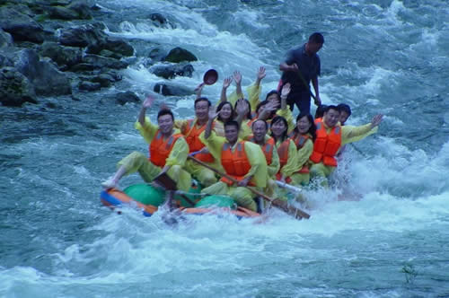 猛洞河漂流 你屏住呼吸,你簇緊筋肉,眼看著隘口灘關(guān)臨近了,卻彈指剎那,電光一閃,就到了腦后,是闖還是飛過來的,你已經(jīng)沒有心思去搞明白,你只覺腦袋里面空空如也,全身一輕,被壓到極限的一根彈簧頓然松脫回到原位!幸福的解放。高峰的體驗。在人群里許多年小心翼翼,不便吐出的嘶喊,這里,由著你在一個瞬間,奪腔而出!