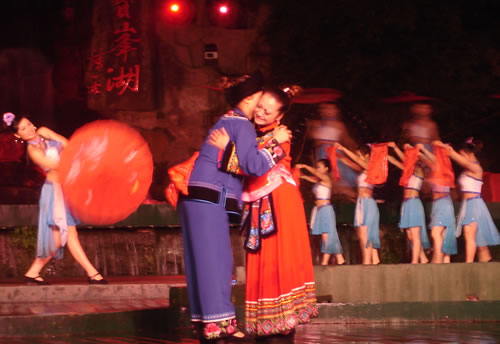 通過一段時(shí)間的培養(yǎng),戀人之間的感情升溫。男女雙方會商量結(jié)婚事宜.從這以后,土家姑娘就會偷偷練唱哭嫁歌。