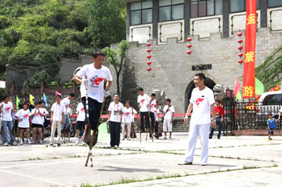 張家界高花燈亦稱高皇燈,是流行于永定沅古坪一帶富有民族特色的舞蹈。表演時,12人至24人不等。配有鑼、鈸、嗩吶、鼓等樂器。每人手中拿一盞紙扎燈籠,內(nèi)點蠟燭兩根,頂扎一木偶像,用五色紙剪成戲文故事如“八仙” 、“瓦崗寨”,“梁山英雄 ”之類。高花燈表演有一套程式,要求東起西落,進一個“半邊月”,出一個“月團圓”,舞個“太極圖”。亦可進民房表演,叫“愿燈”,多為祝福、還愿或為某家喜事湊趣。打吆喝、打口哨則只能到戶外表演,叫“眾燈”,是讓大家看的。其形式又分民燈、戰(zhàn)燈。前者表演 古代先民的遷徙、繁衍、勞動、生活;后者表演打仗破陣。隊形變化有“織籬笆”、滾柱頭”、“十八斗”、“螺螄轉(zhuǎn)頂”、“八卦陣”、“過天星”、“一字長蛇”等二十余種。如破“象棋盤陣”,主人插三十二根香,擺成棋盤陣,表演時,主人舉紅傘,玩燈者舉黑傘,從河道進,將眾“子”一一吃掉(即踩香),這是斗智的競賽。只見燈火如流星般穿插舞蹈 ,旁邊配以龍燈互舞(配龍玩燈,是高花燈的主要特點之一),那激起的鑼鼓聲、吆喝聲、口哨聲,掀起有節(jié)奏的聲浪,熱烈而歡快。 張家界高花燈發(fā)祥于張家界市永定區(qū)沅古坪鎮(zhèn)等地區(qū),與沅古坪地區(qū)接壤的沅陵、桃源、慈利等周邊區(qū)縣也有少量玩高花燈的習慣。 高花燈的燈代表著光明幸福,12個燈表示12個月,月月平安無事。每年春節(jié),每個村寨都要操練一班高花燈,辭舊迎新。制作時,藝人用竹篾和紙扎糊成12或24個燈籠,在燈籠下加上一個長柄燈托,并在燈籠上扎上五顏六色的“故事”,如“八仙”、“耿氏送子”等。夜晚,在燈籠里點上木油臘燭,一人舉一個燈籠,邊舞邊組成多種隊形。一眼望去,流光閃爍,尤如銀河戲舞。 張家界高花燈不但為本鄉(xiāng)本土的觀眾所喜愛,而且受到海內(nèi)外朋友及國際友人的高度贊賞。因為它是中國古老的民間舞蹈代表,它以自成體系的記譜方法,延繼著中國舞蹈的血脈,以其悠久的舞蹈歷史和多元文化特征,被舞蹈界認為是“中國舞蹈歷史上的活化石”,極具學術研究價值和很高的審美價值。已列入全省第一批非物質(zhì)文化遺產(chǎn)保護名錄。 高花燈相傳起源于東漢章帝初年,時“ 中蠻”覃兒健在澧水中下游舉義反漢,與漢軍“戰(zhàn)于洪下”(相傳為今大庸紅土坪,待考),洪下“蠻人”用火 把跳舞為義軍吶喊助戰(zhàn),終因漢軍勢眾,覃兒健與義軍全部戰(zhàn)死(至今留下懸鼓坪、御甲埡、扎營山、烽火臺等古戰(zhàn)場遺跡)。以后,當?shù)匦U人每年都必在過 后年(從正月初一至元宵節(jié))打火把集會跳舞, 栽“ 陽樁”(土話栽跟頭),表示對“洪下之戰(zhàn)”的紀念 。久而久之,火把進化成燈籠和扎人物事故,表演也 有一定規(guī)矩。至今,這種舞蹈藝術還保留著古老、原始、粗獷、豪放、悲壯的特色。 |