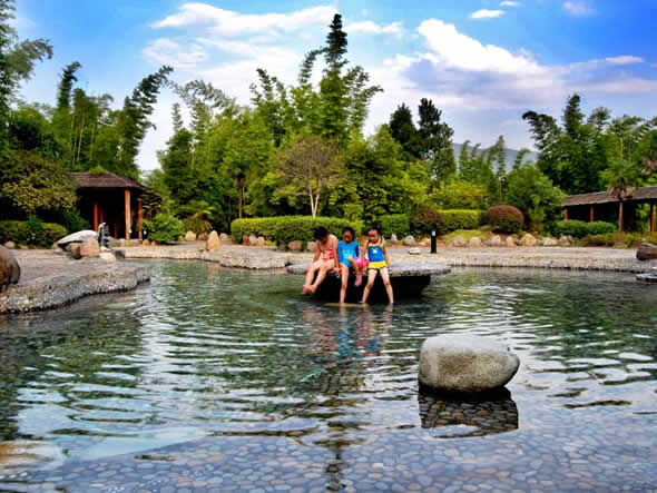 | 熱水溫泉,位于湘、粵、贛三省交界的熱水鎮(zhèn),是我國南方水溫最高,流量最大,水質最好,熱田面積最寬的天然溫泉。熱水水溫一般為 91.5℃,最高達98℃。熱泉水無色透明,稍有硫化氫氣味,為低礦化、低硬度、高溫弱堿性重碳酸、硫酸-鈉型氟及硅質礦泉水,含硅、鈉、鉀、鈣、鍶、硼、氟、氡等三十多種對人體有益的元素。其中“氡”元素正常情況含量30IMA即可做為生殖系統(tǒng)輔助治療藥物,根據(jù)聯(lián)合國教科文組織官員實地考察,福泉山莊熱泉水“氡”含量達到了130IMA左右,對治療不孕不育的生殖系統(tǒng)疾病有較好的輔助治療效果。