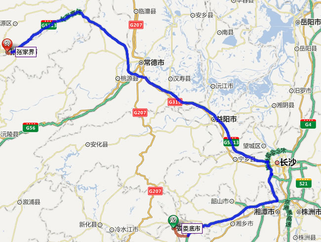 婁底市到張家界自駕車路線圖 婁底市到張家界自駕車旅游動畫演示