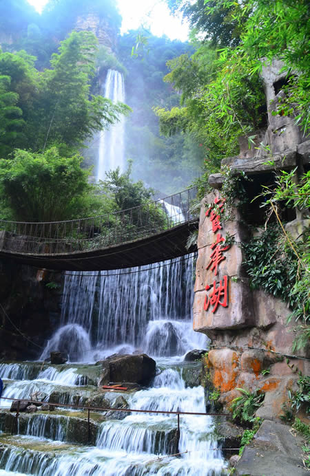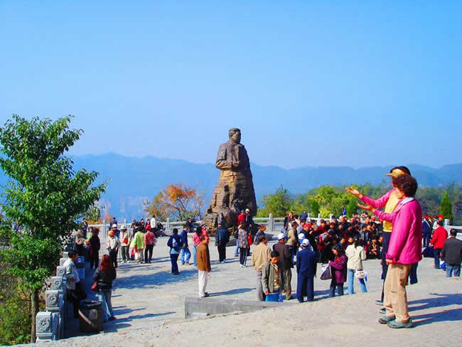 坐落在1200米的千層巖左側(cè)。公園內(nèi),屹立在“云青巖”上的賀龍銅像與大自然連為一體,形成獨特的藝術(shù)風(fēng)格。這是我國近百年塑造的最大的一尊銅像。神堂灣:神堂灣是一個神秘的天國,一座綠色的迷宮,至今無人問津。一個凹形深谷,四面是刀切般的絕壁,終日霧雨霏霏。向下層巒疊嶂,形成五級神堂,谷底深不可測,被稱作“神秘的天國”。