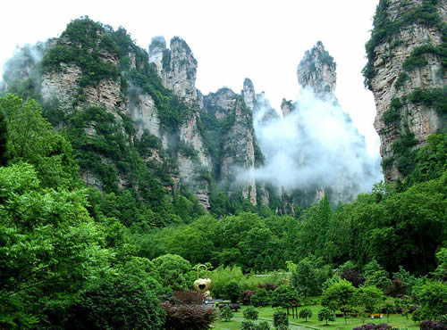 下 午:中餐后游玩世界自然遺產(chǎn)的核心---袁家界景區(qū)(包含電影《阿凡達》中“哈利路亞山”原型“乾坤柱”、天下第一橋、九天玄梯、乾坤柱、連心橋、中韓友誼亭、神龜問天、迷魂臺等景點) 。袁家界,是張家界森林公園山頂觀景最為奇特壯觀景區(qū)之一,與黃石寨遙遙相對卻勝過它…之后便乘坐大約20分鐘的環(huán)保車可到大觀臺住宿地休息,體力好者導(dǎo)游可帶去游玩未開發(fā)景區(qū)——老屋場風(fēng)景區(qū),觀原生態(tài)的空中田園及神兵聚會絕景。